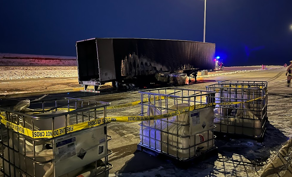 DES MOINES – The Iowa Department of Natural Resources is investigating a lactic acid spill near Adair in Adair County. On January 7, the DNR Field Office in Atlantic was notified of a semi-trailer on fire at the I-80 eastbound rest area, approximately three miles east of the city of Adair. The semi, owned by World Way Freight Transport, was hauling poly totes of lactic acid when the driver noticed the trailer tires were smoking and pulled over at the rest area. The driver attempted to extinguish the fire, but was unsuccessful. The Adair Fire Department responded to the incident and upon arrival observed the majority of the trailer and its contents were on-fire. It is estimated that approximately 550 gallons of lactic acid were lost due to the fire and firefighting activities.