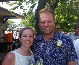 Sarah says she contacted RAGBRAI executive director T-J Juskiewicz about the wedding idea, who in turn contacted Clear Lake officials who helped set up the ceremony. Whit says they made everything incredibly simple for the couple. “They couldn’t have made it any easier, the flowers, they were amazing,” he says. “They didn’t even talk to us about it, they just had them ready. They asked what her favorite color was, periwinkle, they just had them ready. Oh, my God!”