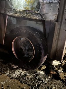 The driver had managed to get the other trailer and semi tractor unhooked and away from the burning trailer before they arrived. The fire was quickly knocked down.