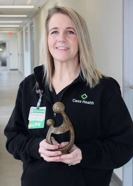 (Atlantic, Iowa) – Officials with Cass Health in Atlantic, today (Tuesday), announced that Michelle Phippen, LPN is the newest recipient of The DAISY Award, which celebrates excellence in nursing. Phippen became an LPN in 2012 and began working at Cass Health in November 2023. She works at Atlantic Medical Center with Family Medicine Physician Dr. Adam Verhoef. Phippen was nominated by her coworker Clara Hagedorn, LPN who wrote a detailed nomination about Phippen’s dedication to help a non-English speaking patient through the hardships of her pregnancy, including providing education and care related to gestational diabetes.