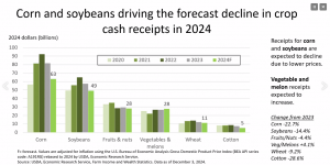 The data used in the USDA ERS forecasts represents the entire farming sector of nearly 2 million farms and ranches. Litkowski said the reports are used to inform policy makers and lenders, and in determining the ag sector’s contributions to the U.S. economy. It’s forecasted that farmers in 2024 will have a decreased need of supplemental and disaster assistance, as well as lower dairy margin payments. That will result in a forecasted $1.7 billion decrease from 2023 in direct government payments to farmers.