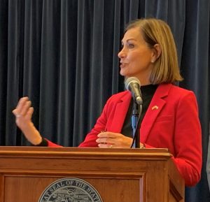 Iowa Governor Kim Reynolds speaks during an October, 2024 news conference. (RI photo)