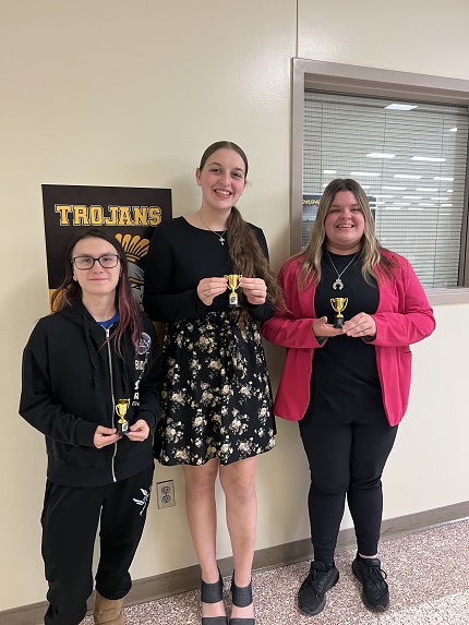 At Atlantic’s Bull Creek Invitational Friday night speech events, Macy Burg participated in Informative speaking and placed 2nd overall. Hannah Thomas placed 2nd overall in Original Oratory. Sophie Herberg placed 3rd overall in International Exptemoransous Speaking. Jakob Petersen participated in Humorous Acting, Declan Cambaage in International Extemporaneous Speaking, Megan Gerlock in United States Extemporaneous Speaking and Echo Crecilus in Original Oratory.