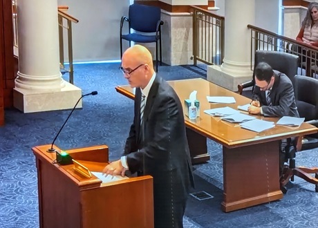 Dorsey Attorney Trevor Hook speaks before the IA SUPCO Nov. 14, 2024 (Ric Hanson photo via YouTube)