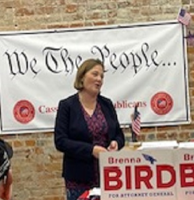 Brenna Bird said she was “Glad to do [her] job,” and “uphold the ‘Heartbeat Law’ in [the[ Supreme Court.” She said her office also supports law enforcement and victims of crime, and prison time for persons who deal in illegal drugs that leads to a death. Bird said some of the candidates running for office claim to “Back the Blue,” but don’t, in reality.