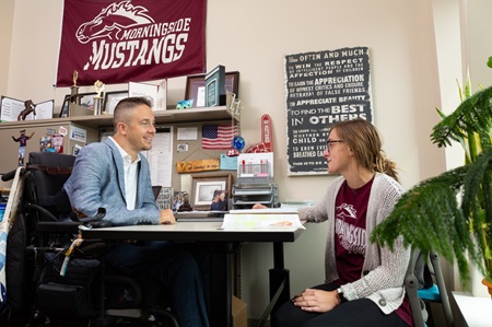 Alex Watters works at Morningside University in Sioux City, Iowa. He says he’s had to turn down promotions and other opportunities to keep his income below the threshold that allows him to receive benefits as a quadriplegic. (Alex Watters/IDDC)