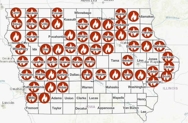 Iowa counties with Burn Bans in effect (as of 10-14-24)