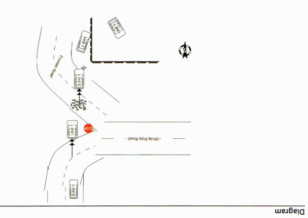 An investigation determined the KIA was traveling north on White Pole Road when it left the roadway on a curve. The car entered a ditch and continued north through the ditch until it struck an embankment along the side of Frontier Road. The impact with the embankment caused the vehicle to go airborne for several yards before it struck the top half of a telephone pole, causing the pole to snap in-half. The vehicle continued airborne for several more yards until it landed in a fence row for a pasture.