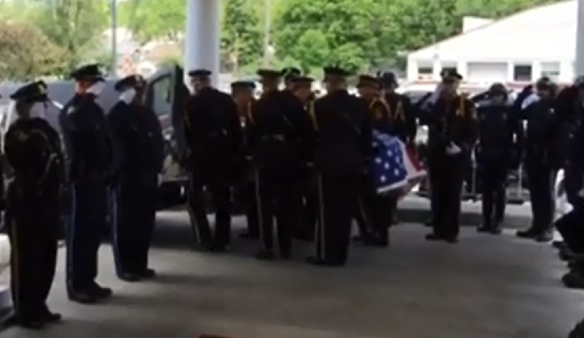 In a tradition that dates back centuries for a fallen comrade, a riderless horse was escorted to the steps of the church, as the rows of uniformed officers saluted.