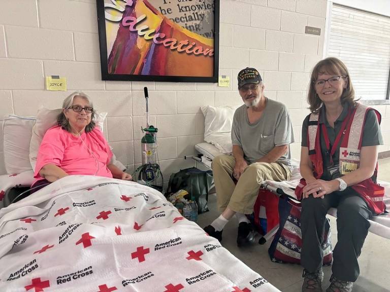 Hurricane Helene survivors in a South Carolina shelter (Red Cross photo)