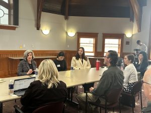 U.S. Sen. Joni Ernst, left, spoke with higher education leaders and students March 25, 2024 at Graceland University in Lamoni. (Photo by Brooklyn Draisey/Iowa Capital Dispatch)