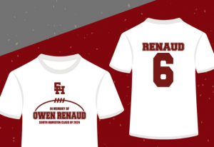KCCI reports South Hamilton announced that tonight’s (Friday night’s) home football game against Roland-Story will be a white-out. White T-shirts with Renaud’s name and football number (6) will be available during the game for a free-will donation. Online shirt orders can be placed here.
