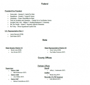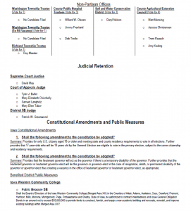 (Greenfield, Iowa) – The Adair County Auditor’s Office has released the FINAL list of candidates and public measures to appear on the November 5th General Election ballot. ( See below)