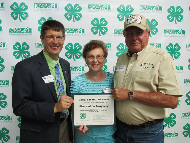 Officials with ISU Extension in Guthrie County report Jim & Jo Laughery of Guthrie Center were inducted into the 2014 Iowa 4-H Hall of Fame during a ceremony at the 4-H Exhibits Building at the Iowa State Fair on Sunday, August 17th.