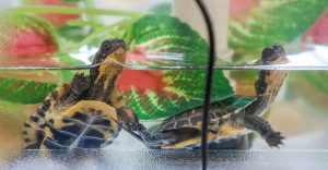 Four pregnant turtles were recently found and their eggs were incubated, which produced a crop of 57 baby turtles. They’re all being cared for at the zoo, for now. “They have little containers that they’re in, like a little setup of water and food and all that sort of stuff, and they are marked so we know who came from what mother, so that we know when we put them back in the wild, we know that we’re going to put them back in the area where the female was found,” Eckles says. “So they have little markers on them, so we can identify who goes where.” The dozens of turtles will be set free next spring in the spots where their mothers were discovered. The turtles were about the size of a quarter when they hatched, and they’ll be about three to four inches in diameter when released.