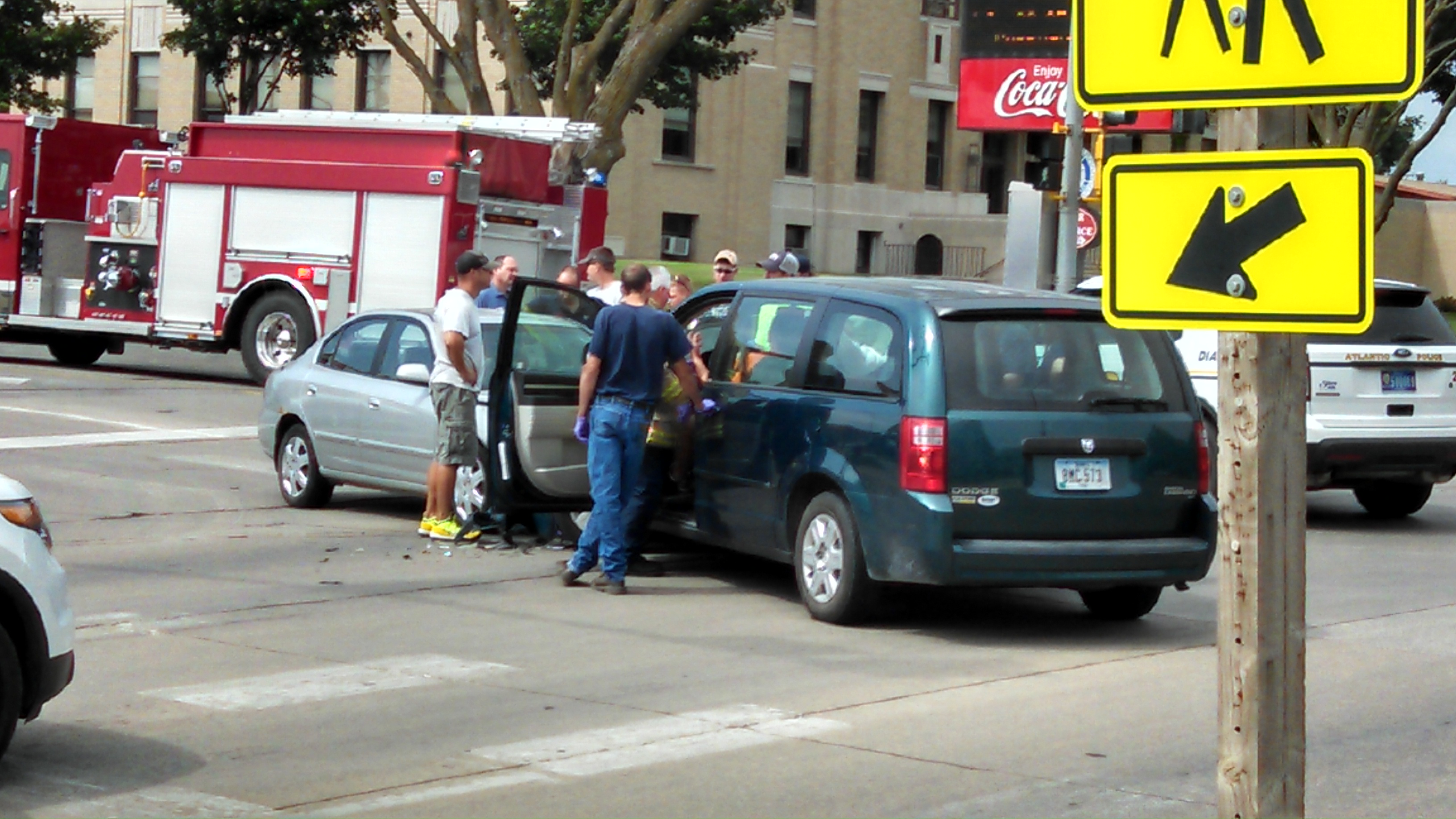 One person was transported to the Cass County Memorial Hospital in Atlantic following a collision between a van and a passenger car late this (Friday) morning, at 7th and Chestnut Streets. The accident happened at around 11:10-a.m.