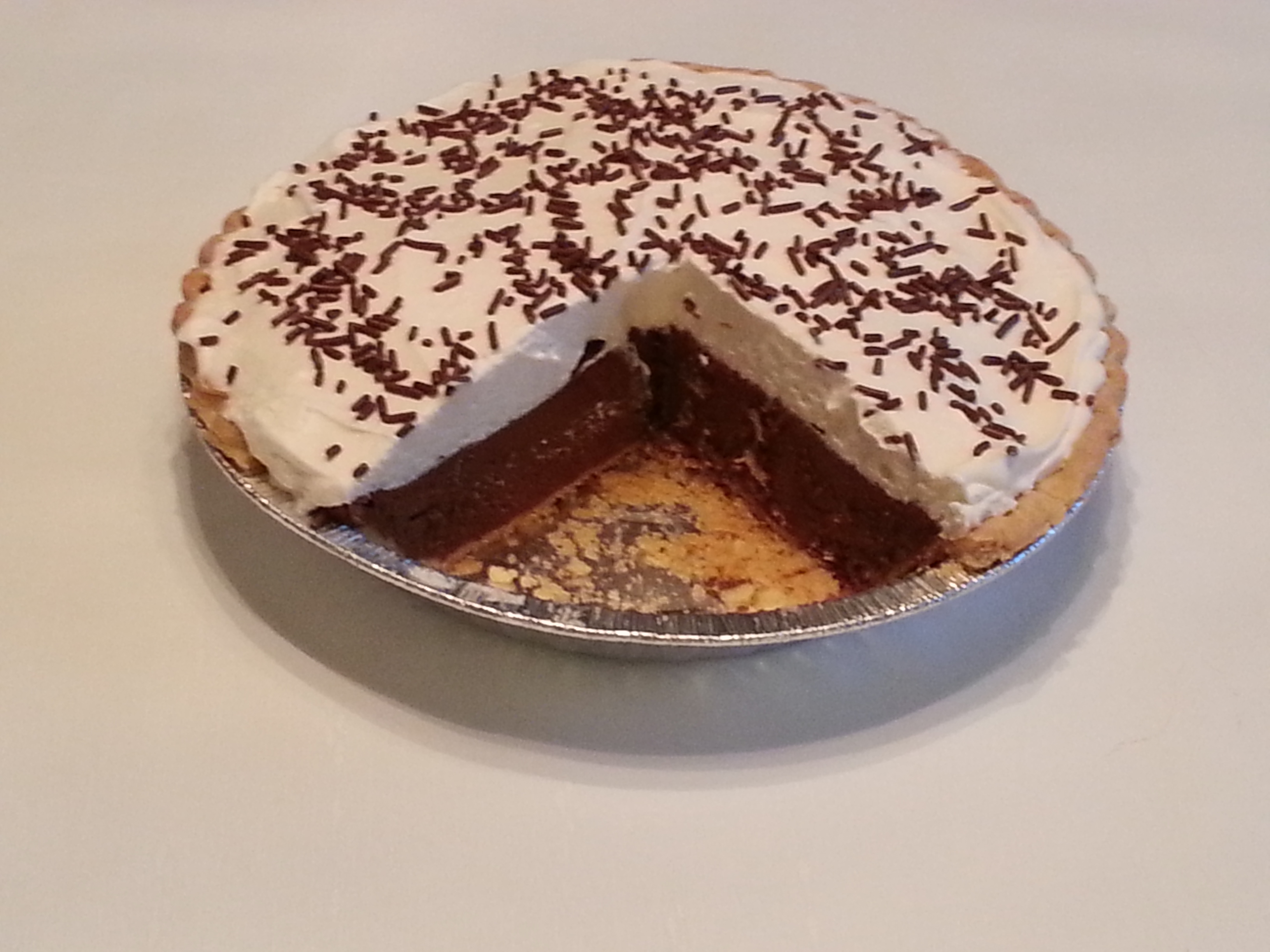 Thaw pie crust for 10-20 min. Using a fork, poke holes all around the inside of the crust. Preheat oven to 400 degrees. Bake crust for 11-13 min. or until crust is golden brown. Break apart chocolate candy bars into a small pan or microwave-safe bowl. Melt chocolate and butter together. Cool slightly. Stir in tub of Jiff Whips. Stir in 6 oz. whipped topping. Pour into pre-baked pie crust. Spread remaining 6 oz. whipped topping over top of pie. Decorate with chocolate sprinkles. Refrigerate until set. Makes one 9-inch pie.