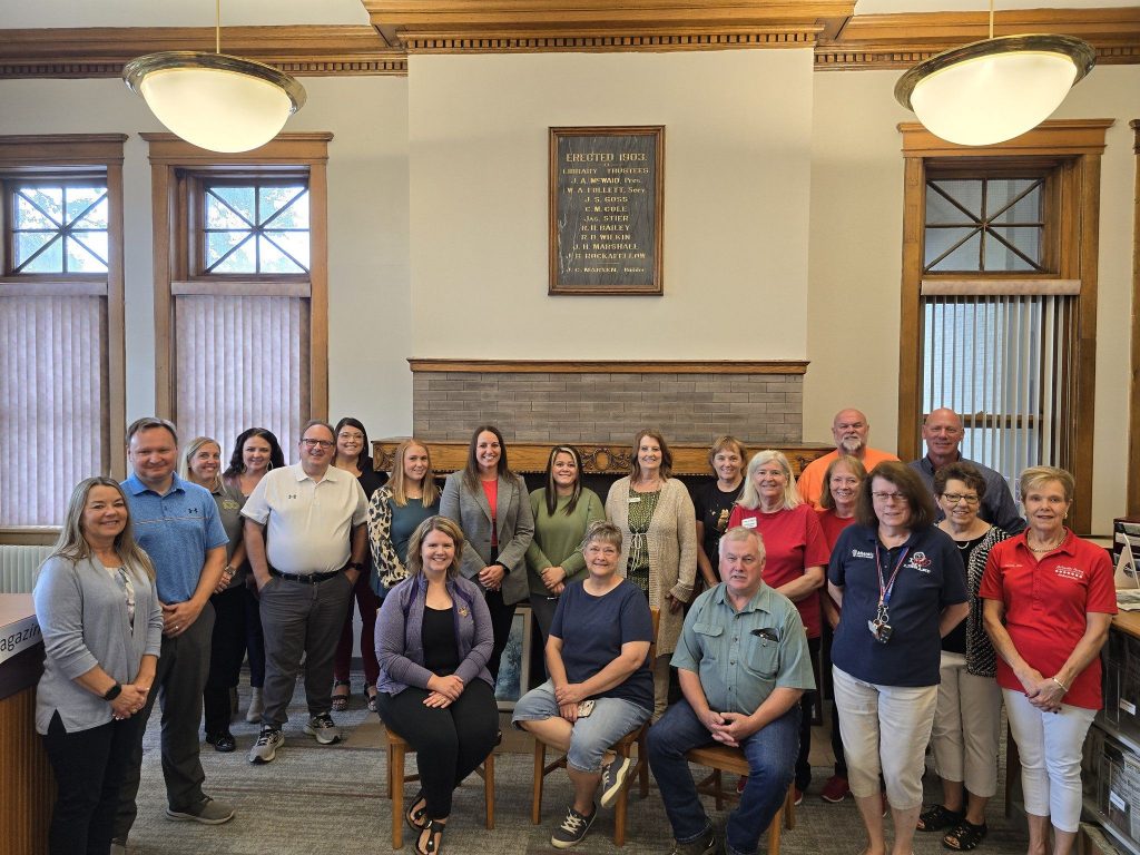 (Atlantic, Iowa) – The Atlantic Chamber Ambassadors were hosted by members of the Atlantic Public Library Board of Trustees on Thursday, September 5th, to view the recent renovations and get an update on the library’s programming. The Atlantic Public Library has completed its upstairs renovation project. The overall project took six weeks to complete and consisted of new paint, carpet, and updated elevator. The renovation was initiated to match the renovation project completed in 2020 and make the facility more cohesive. The new flooring has a gray base and complements the oak-stained woodwork. The trustees shared that the next projects on the renovation list include a new roof and gutters, new boilers, and eventually new windows.