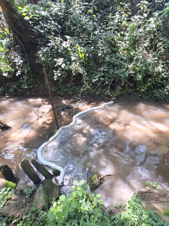 A large storm sewer outlet was identified directly above the pooled water. Oakland city officials were notified, and assisted DNR with placing booms and absorbent pads to avoid further release into the river.