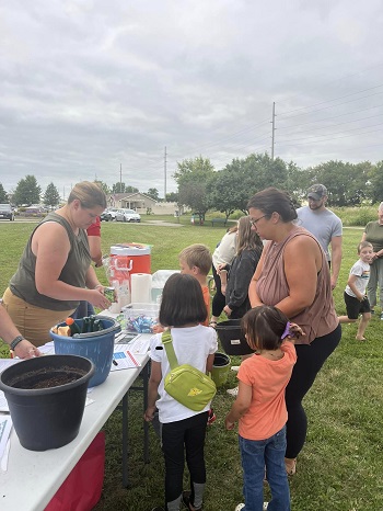 (Atlantic, Iowa) – Cass County Community Wellness Coordinator Grace McAfee reports the Cass County Grow Another Row Committee hosted a free potting event at Mollett Park on August 6th (2024). The weather was great, McAfee says and there were 28 participants who attended the event, which taught community members how to plant late-season patio plants. Participants planted herbs, radishes, peas, lettuce, and spinach. Those crops grow in cooler temperatures, making them perfect patio plants in the early fall months.