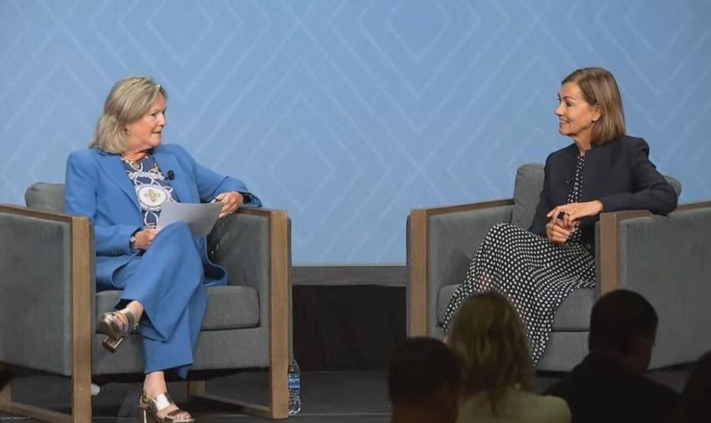 Governor Reynolds, on right, with ALEC CEO Lisa B. Nelson at the group’s annual convention in Colorado. (ALEC photo)