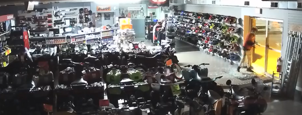 Officers with the Atlantic Police Department arrived on scene by 3:35-a.m., and found that there was damage caused to the front of the building and there appeared to be missing inventory. A preliminary review of on-site cameras show a U-haul type vehicle back into the east side doors causing them to break. Three individuals enter the building and loaded six dirt bikes into the back of the vehicle. The vehicle then left the parking lot. Surrounding counties were notified and the dirt bikes have been entered as stolen. There was a time delay between the event and the security company notifying the communications center.