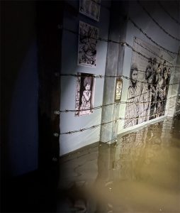 (Radio Iowa) – All of the buildings at the Sioux City Railroad Museum were flooded when the Big Sioux River went over a levee in the city’s Riverside neighborhood. That includes the Holocaust Rails exhibit which debuted in April of 2023 with photos and items from the Holocaust of World War Two. One of the exhibits designers, Lou Ann Linblade, says they tried to take steps to protect it. “We went out on Sunday ahead of the flooding to try to raise as much stuff up as we could and we really believe that we were taking things out of harm’s way raising them three feet off the ground. As it turned out that wasn’t enough,” Linblade says. She says their work did help minimize some of the damage.