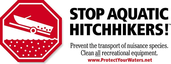 It is illegal to possess or transport aquatic invasive species or to transport any aquatic plants on water-related equipment in Iowa. Signs posted at public accesses identify infested waters and remind boaters to stop aquatic hitchhikers. Iowa law also requires boaters to drain all water from boats and equipment before they leave a water access and to keep drain plugs removed or opened during transport. It is also illegal to introduce any live fish or plants, except for hooked bait, into public waters.