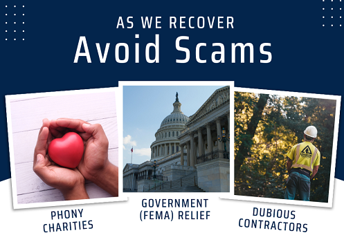 Sand offers these tips for avoiding scams in the wake of natural disasters: