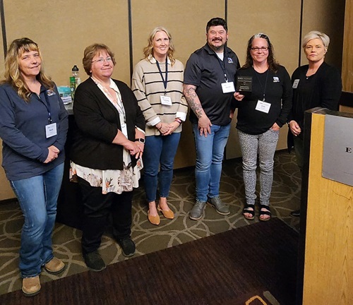 Photo Caption: SWIPCO Staff Accepting the 2024 ICOG Innovative Project Award at the Staff Retreat in Des Moines (L-R): Barb Boggs, Mary Auten, Tammy DeBord, Aaron Koontz, Erin Hudson, ICOG Chair Nichole Moore.