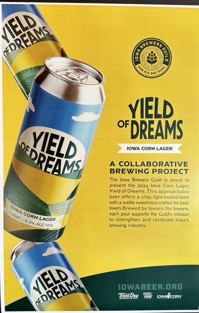 (Radio Iowa) – Brewers from across the state are producing a limited edition “Yield of Dreams” beer to draw attention to Iowa’s craft beer industry and its economic impact on the state. Iowa Brewers Guild executive director Noreen Otto says the beer-making process started yesterday (Tuesday) at Field Day Brewing in North Liberty. “It will now sit in the tanks and go through all the beautiful magic that will make it a lager,” Otto says. “We’ll be releasing the beer at the Iowa State Fair in August.” Iowa grown corn is the key ingredient.
