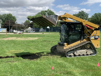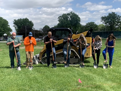 Rob Stamp with Stamp Construction was on-hand with his skid-steer loader/bucket to take the first bite of dirt, after the dignitaries used spades to turn over the first shovels of dirt.