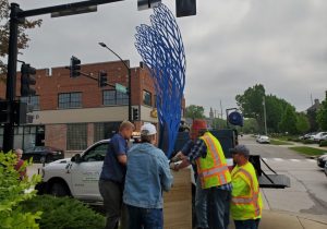 (Radio Iowa) – New sculptures are being added to the River City Sculptures on Parade display this week in downtown Mason City. It’s the 12th year of the program as artists from across the country are in town, installing their works on pedestals throughout the nearly two-mile route that winds through downtown. Sculptures on Parade director Mary Markwalter says 20 new sculptures are being installed this week. “It’s a really pretty walk, very diverse,” Markwalter says. “The artists came in for it, it was really nice, we have a lot of artists here for this install.”