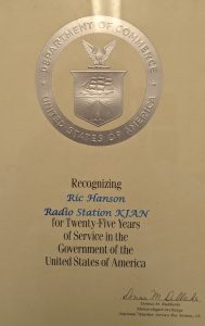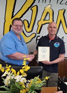 (Atlantic, Iowa) – KJAN News Director Ric Hanson, today (May 15, 2024), received recognition from the National Weather Service, for 25-years of service in reporting weather observations. KJAN is the OFFICIAL National Weather Service reporting site for Atlantic. Our records (some of which date back to the 1800’s, and were passed-on from previous Cooperative Observers), have been kept at KJAN since the 1950’s.