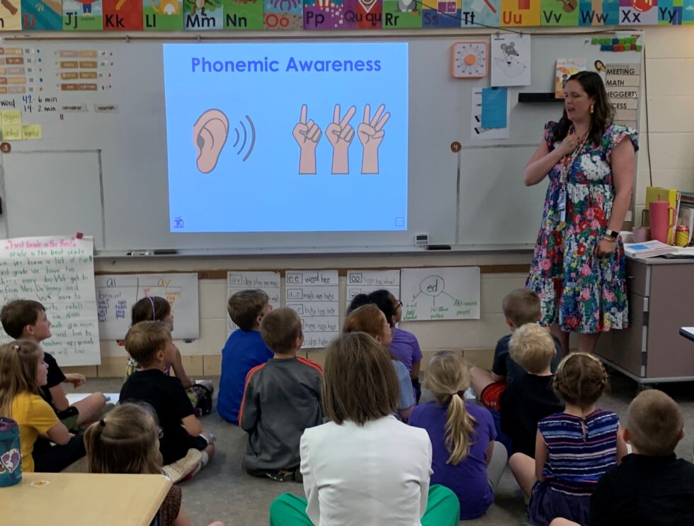 (Radio Iowa) – Governor Kim Reynolds says a focus on what’s called “the science of reading” will improve the reading skills of students. The governor went to Adel Tuesday afternoon and sat among a group of first graders as their teacher led them through a reading lesson. The Adel-DeSoto-Minburn district adopted the science of reading three years ago in all grades and Travis Welker, the administrator in charge of the project — says they’ve had amazing results. Four years ago, tests showed a quarter of the district’s students were not skilled readers. This year’s results show 95 percent are proficient at reading and writing.