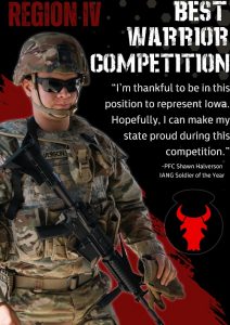 Johnston, IA – The National Guard’s Region IV Best Warrior Competition is a rigorous event where soldiers from various states demonstrate their skills in fitness, marksmanship, and combat readiness, competing to earn the prestigious title of “Best Warrior”. Soldiers from seven states have won their respective state’s competition and will gather to compete for the right to move on to the national competition. This is the first time is seven years that the regional competition has been hosted in Iowa.