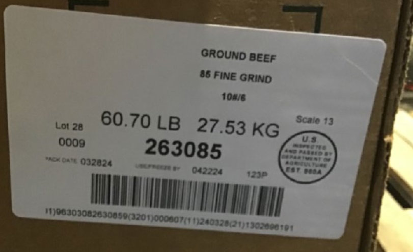 The raw ground beef items were produced on March 28, 2024. The products have a “Use/Freeze by” date of April 22, 2024, and packaging date of “032824.” The list of products that are subject to the public health alert can be found here. The labels for these products can be found on the FSIS website [view labels].