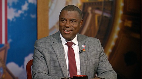 State Representative Eddie Andrews, a GOP candidate for governor, on the “Iowa Press” set at Iowa PBS. (Iowa PBS photo)