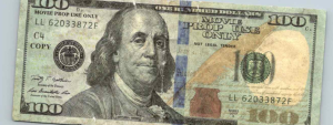 Example of a counterfeit $100 bill (photo provided by the Chamber) – Note it says “Movie prop use only.”