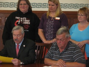 Gov. Branstad (Left) reads the Lights on Afterschool Proclamation, w/Atlantic Mayor Dave Jones to his right.
