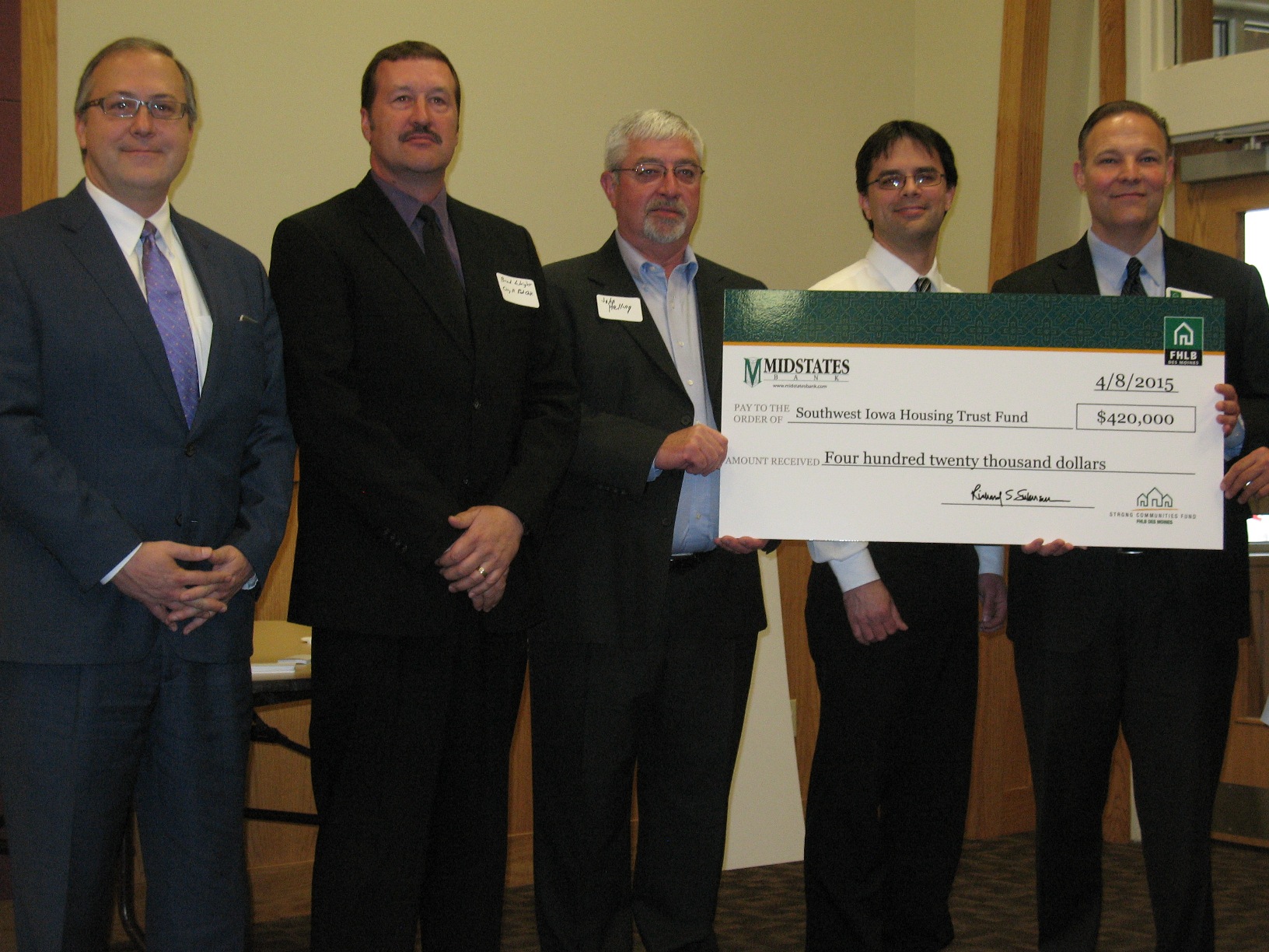 The second award was to the Southwest Iowa Housing Trust Fund, the City of Red Oak, and Houghton State Bank. The $112,000 grant will be used to repair 20 homes. The repair program is a continuation of previous housing repair projects funded by Houghton State Bank, Midstates Bank and FHLB in Des Moines.