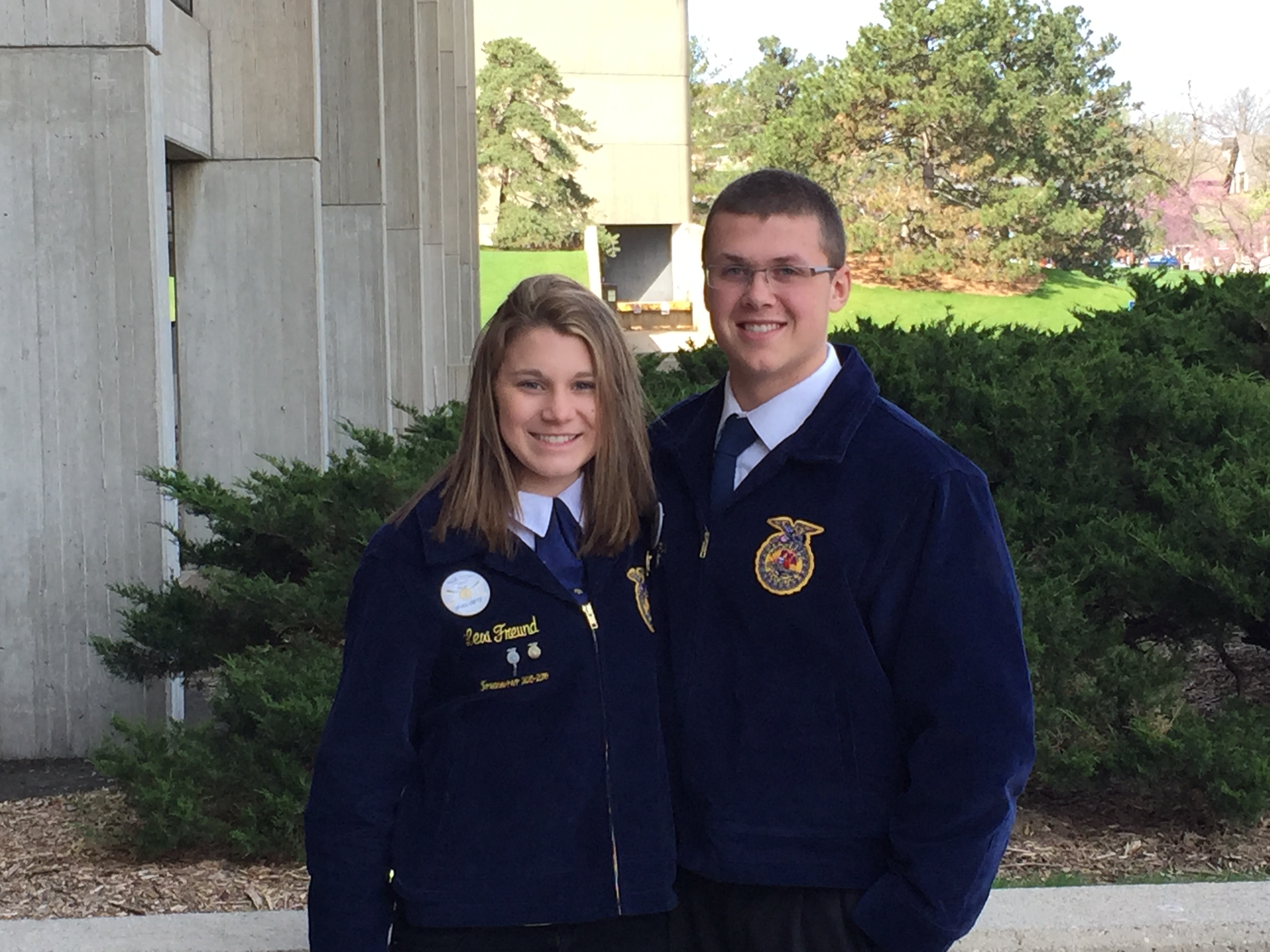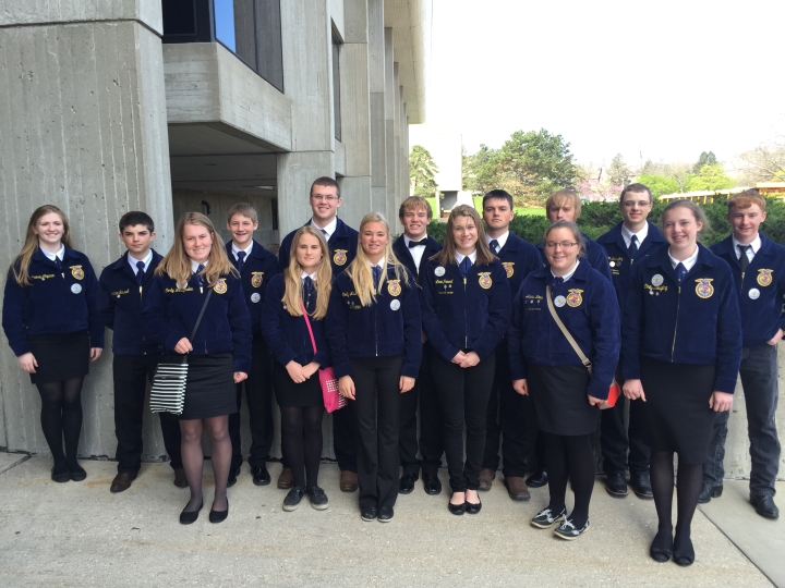 State Convention Group: Left to Right Back Row Miranda Chipman, Josh Rossell, Cale Pellett, Nate Moen, Marshal McDermott, Clint Hansen, Sam Barkley, Clayton Saeugling, Adam Freund Left to Right Front Row Carly Westphalen, Morgan Barkley, Emily McDermott, Lexi Freund, Alexis Boes, Emily Saeugling