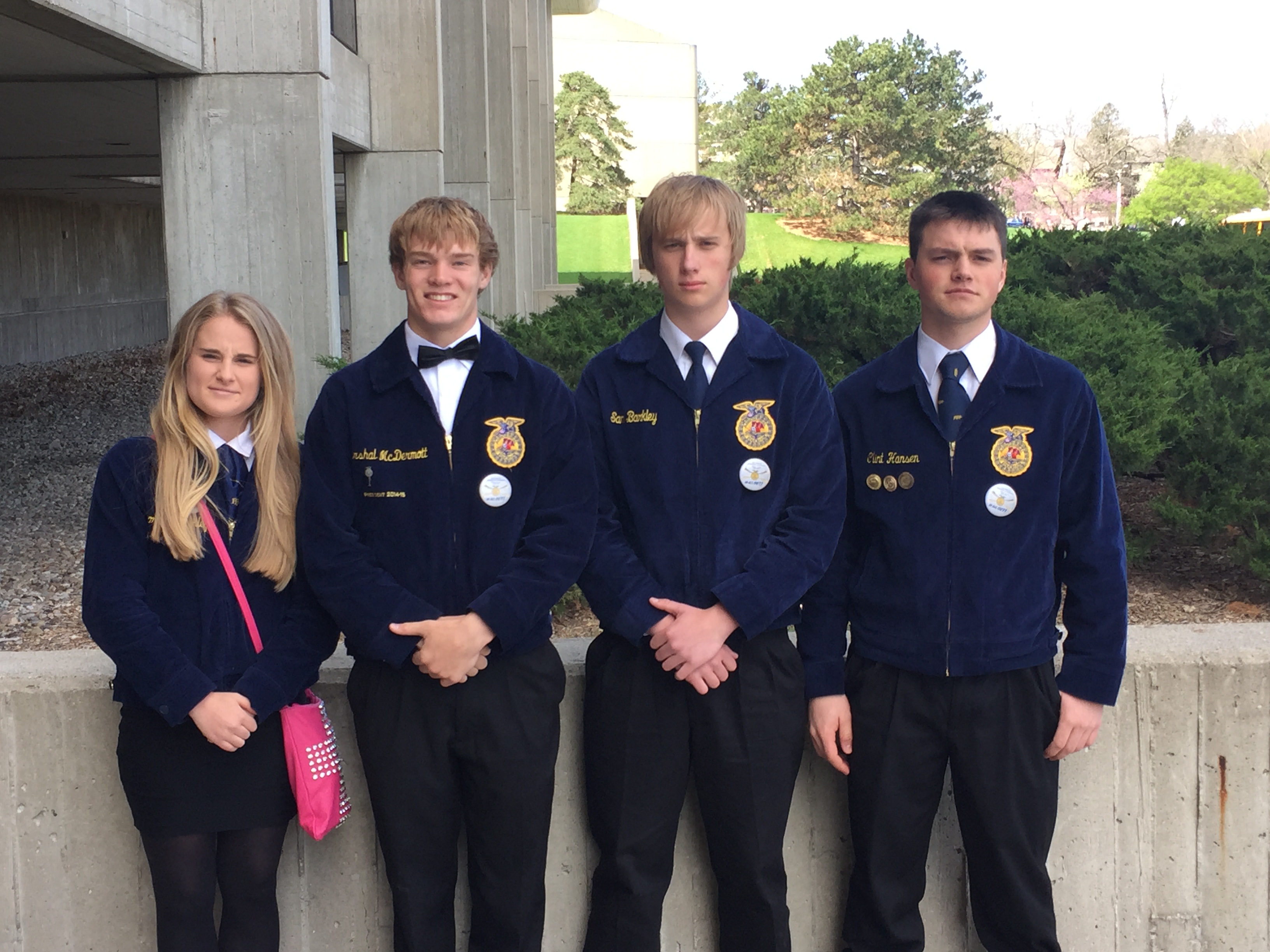 During the conference, there were two tests taken: the Greenhand Test and the Farm Business Management Test. Freshmen Josh Rossell and Emily Saeugling both took the Greenhand Test and earned a silver. This test consists of basic to hard questions about the FFA organization in general. It tests the new member’s abilities to know the history and current information about the FFA. Morgan Barkley, Sam Barkley, Clint Hansen, and Marshal McDermott took the Farm Business Management Test and earned a Bronze. The FBM is a test that analyzes agriculture, farm, and ranch business management information. It applies these economic principles to the decision-making process. It also evaluates agriculture business, and farm business management decisions, as well as the testing of the members ability to work together cooperatively as a group.