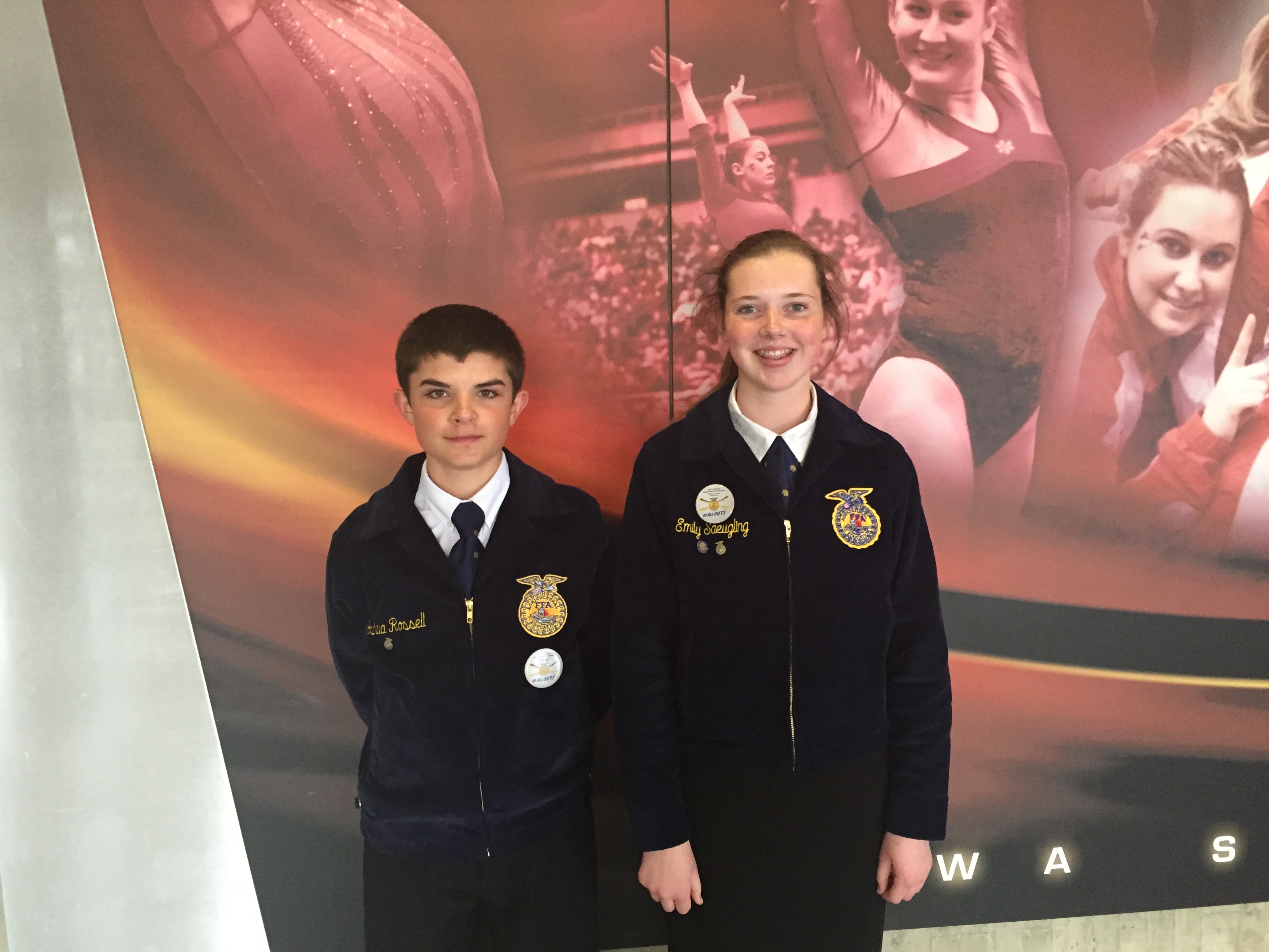 Over Monday (20th) and Tuesday (21st), all 18 people that left for Ames were very busy. The first Career Development Event (CDE) was Creed Speaking; this was done by freshman, Cale Pellett, who placed 6th at the contest out of 18 contestants. At the same time, Clayton Saeugling participated in the an Auditing Committee Meeting and Adam Freund worked with other FFA members from Iowa at Program Of Activities Committee Meeting. Nate Moen and Lexi Freund represented Atlantic FFA at delegate meeting. FFA chapter delegates such as these two are the members that decide the state officers that will be installed at the fourth general session.