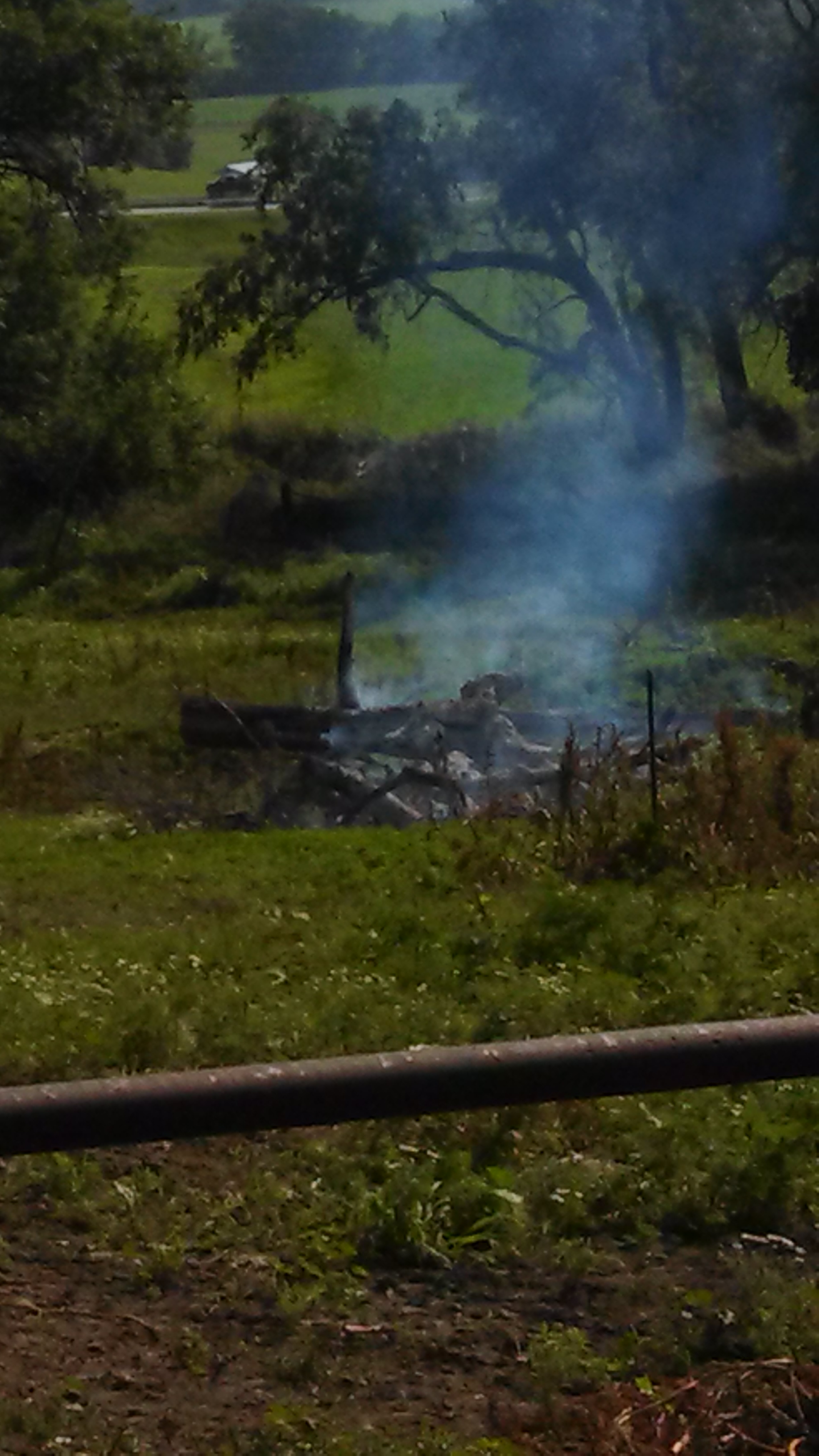 He says they were burning trees from last week’s storm at around 7-a.m.. Cats near the fire were on the prowl for mice escaping the fire, and it’s possible, according to Redinbaugh, that a raccoon living in the debris caught on fire and ran to the barn, catching it on fire.