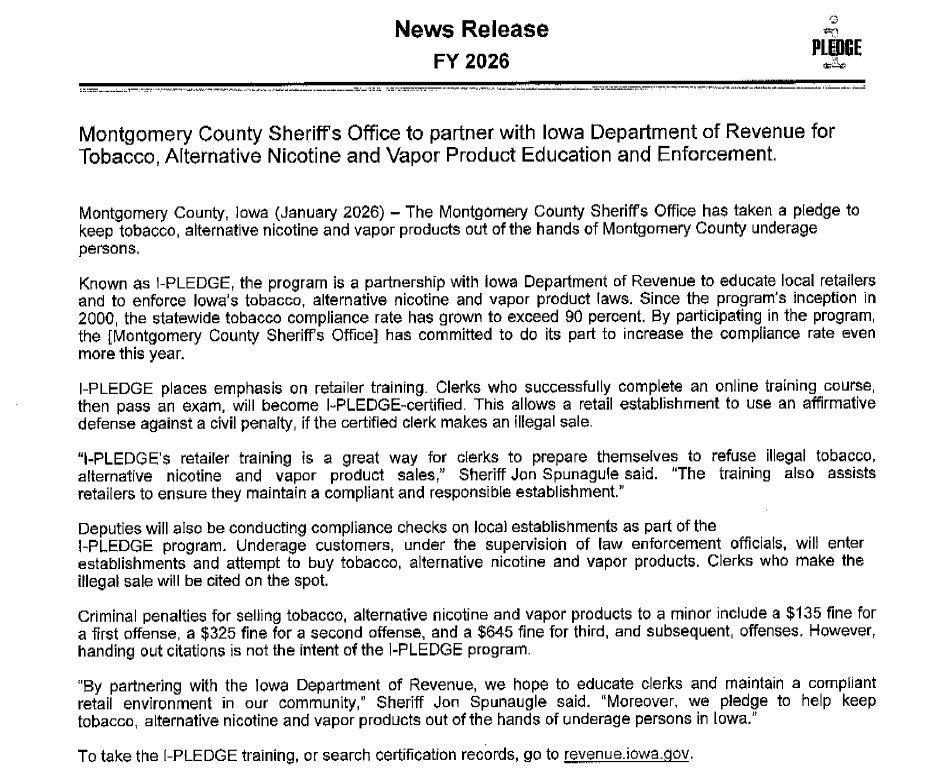 (Radio Iowa) – A former Eagle Grove police officer has pleaded guilty to sending obscene material to a minor using Snapchat. According to a criminal complaint, 28-year-old Colt Richardson sent explicit images to a minor in December of 2024. The Iowa Division of Criminal Investigation assisted Eagle Grove and Wright County authorities in the case.