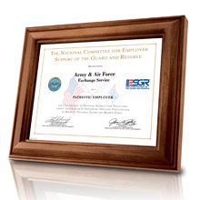 The Patriot Award recognizes employers for their outstanding support of National Guardsmen and Reservists through a wide-range of measures including flexible schedules, time off prior to and after deployment, caring for families, and granting leaves of absence if needed.