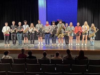 Clarinet Choir: Liam Hawkins, David Blake, Avery Hahn, Ashlynn Albert, Brandon Wagner, Bryson Wagner, Jayna McEntaffer, Willow Drake, Holly Petersen, Gabrielle Engler, Landyn Wiersma, Michael Hocamp and Bella Brock.