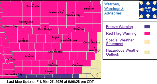 REMINDER: A RED FLAG WARNING CONTINUES UNTIL 9-P.M. TONIGHT (3/27) FOR ALL OF SW/WESTERN IA.